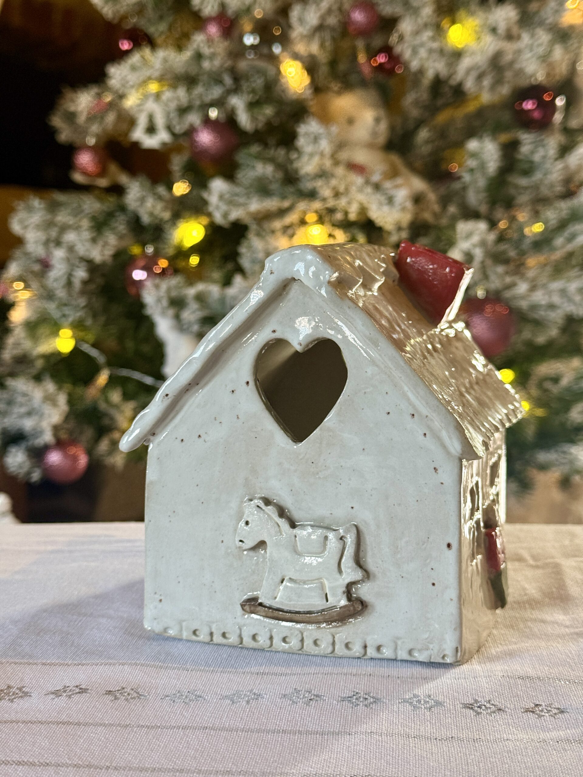 Chaque pièce est unique, réalisé en grès, fabriquée artisanalement dans mon atelier. La maison est réalisée avec un émaux sans-plomb.